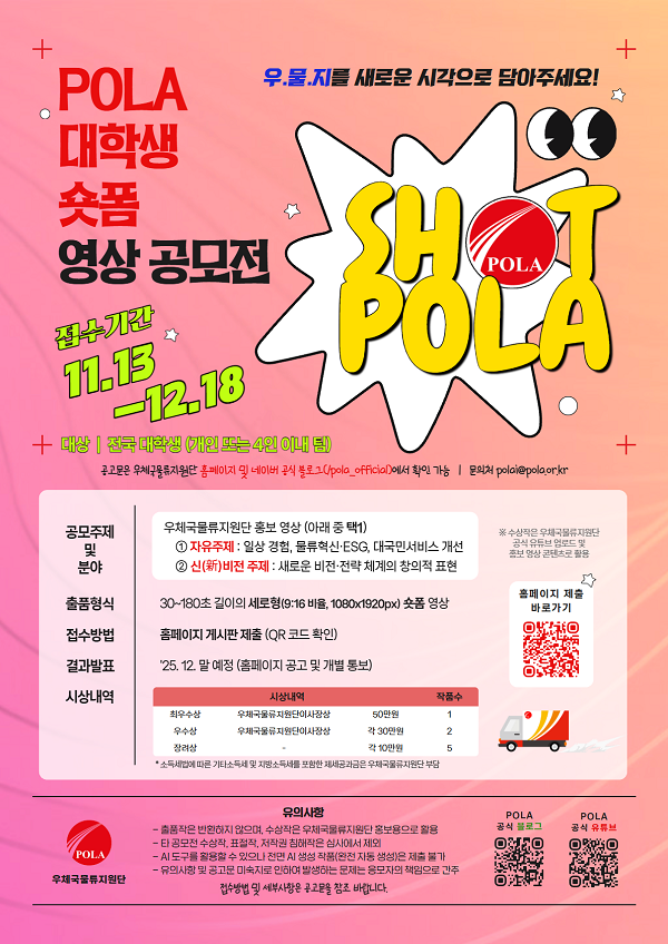 [우체국물류지원단] 2025 POLA 대학생 숏폼 영상 공모전 (SHOT POLA)
